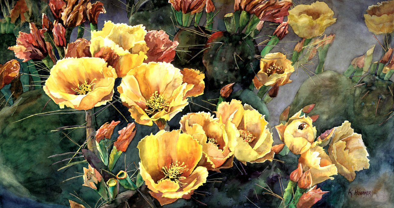 Columbus-born artist Karen Honaker wields magic with her watercolors. After earning a BFA in oil painting and photography, she pivoted to watercolors in 1983 and has never looked back. Karen's art adorns everything from Walmart placemats to Capital One credit cards - check your wallet, you might already own a piece!